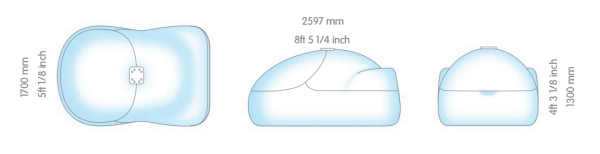 ·外部:長(zhǎng)2597mm*寬1700mm*高1300mm;